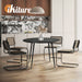110Cm Dining Table Round Wooden Table With Marble Effect Metal Legs Bk