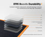 • Robust ETFE Film: ETFE film guards our blanket against corrosion and stains while its non-stick self-cleaning boosts light transmission for increased energy output.