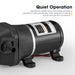 • Moderate Flow: With a steady flow of 12.5 L/min this water pump caters to larger water demands such as RVs portable shower setups and irrigation systems.