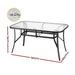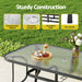 140cm Outdoor Dining Table Steel Frame Tempered Glass Parasol Hole Black