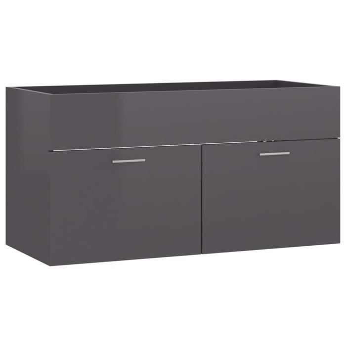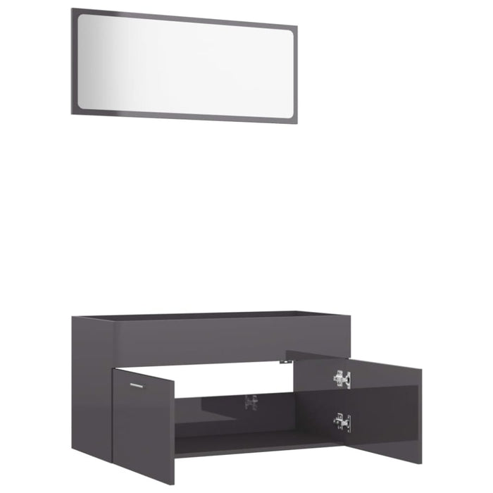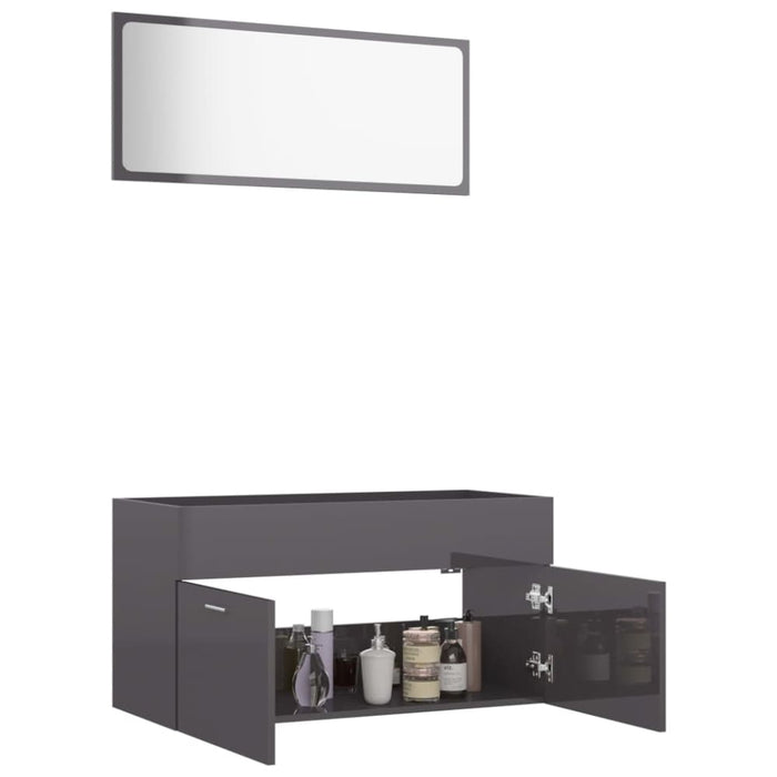 2 Piece Bathroom Furniture Set Glossy Look Grey Chipboard Nbanbn