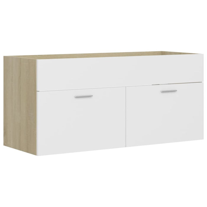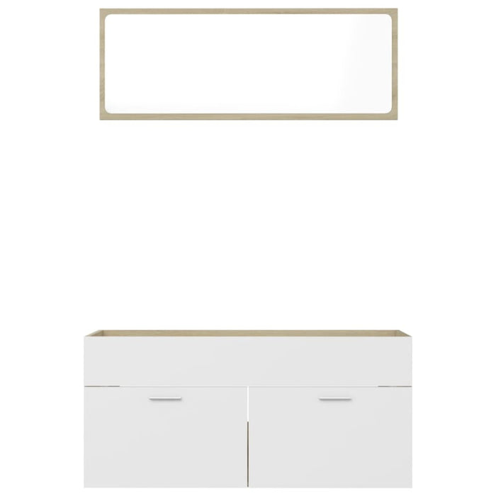 2 Piece Bathroom Furniture Set White and Sonoma Oak Chipboard Nbanoa