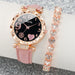 2 Piece Heart Dial Leather Band Watch Set Rhinestone Accents