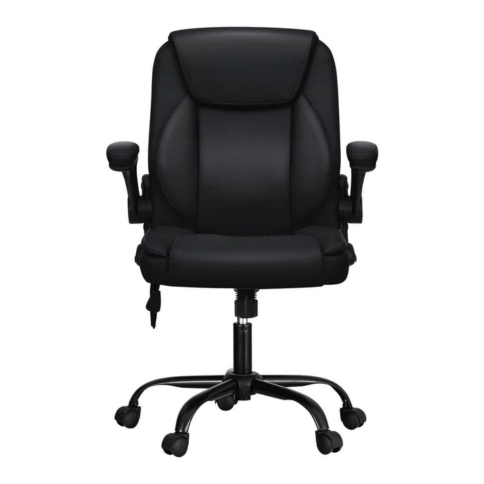 2 Point Massage Office Chair Leather Mid Back Black