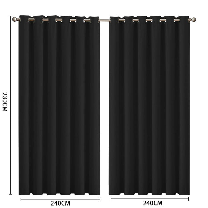 Goslash Picks 2x Blockout Curtains Panels 3 Layers Eyelet Room Darkening 240x230cm Black