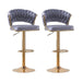 2X Height Grey Velvet Padded Golden Round Base Barstools Chairs