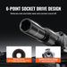 • Hexagonal drive design reduces pressure on fasteners and prevents wear, bolt rounding, and stripping