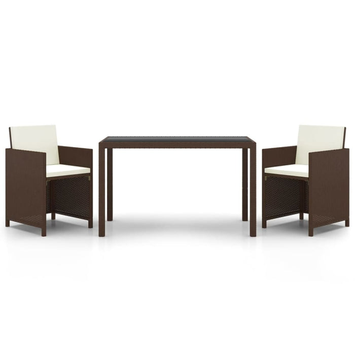 3 Piece Garden Dining Set with Cushions Poly Rattan Brown Tbkpakx