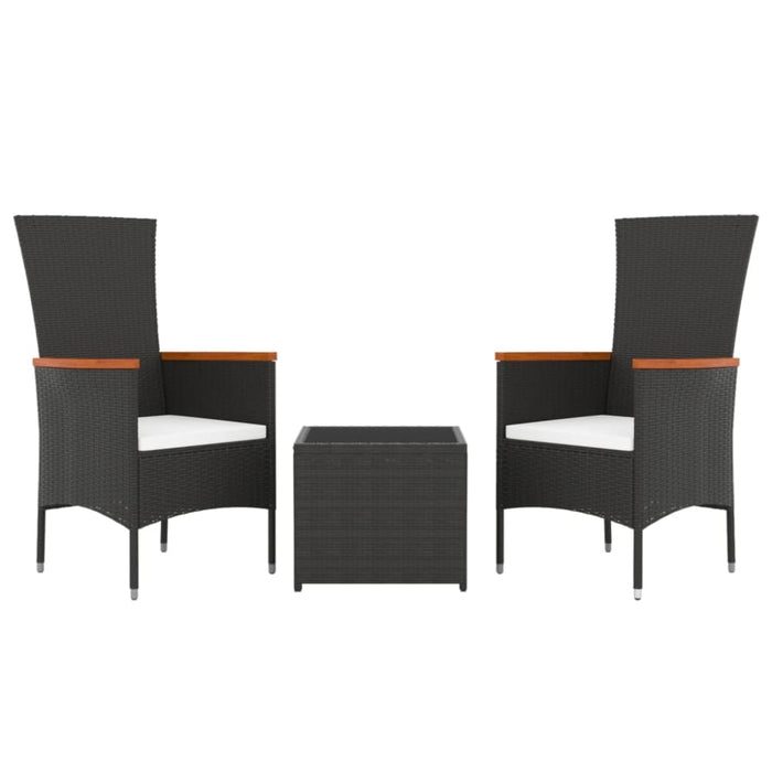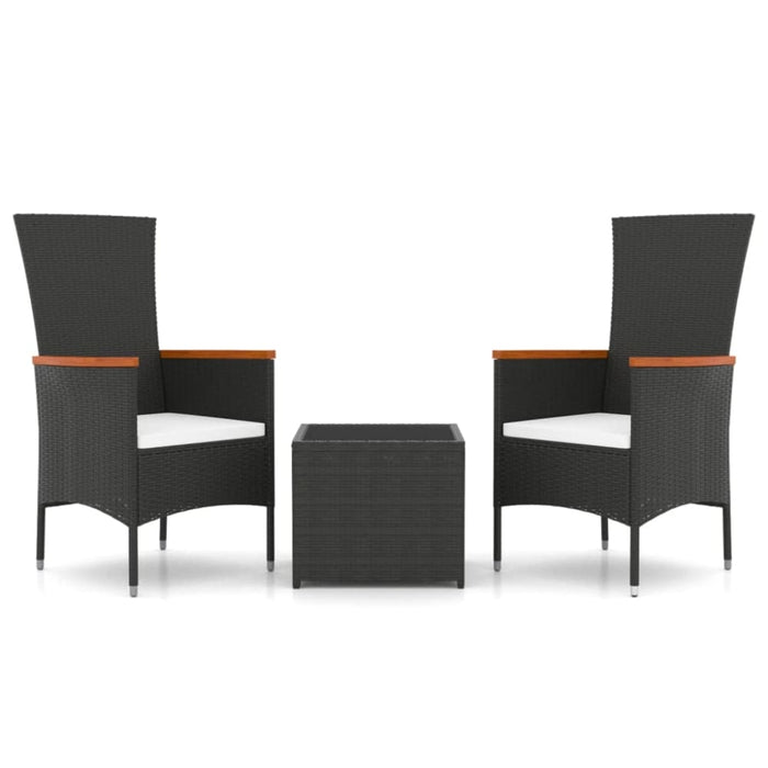 3 Piece Garden Lounge Set Black Poly Rattan&steel Topilpn
