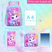 • 4-in-1 backpack set for girls including a backpack (16"x12"x6.5" inches), lunch box (9"x8.5"x3.5" inches), pencil bag, and a cute furry pom as a zip charm