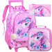 3 Piece Girls Rolling Backpack Set Butterfly Design