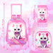 3 Piece Girls Rolling Backpack Set With Lunch Bag Cat