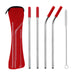 4 Piece Reusable Stainless Steel Straw Set With Cleaning Brush And Travel Bag