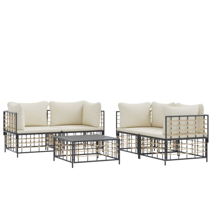 5 Piece Garden Lounge Set with Cushions Anthracite Poly Rattan Tonlibx