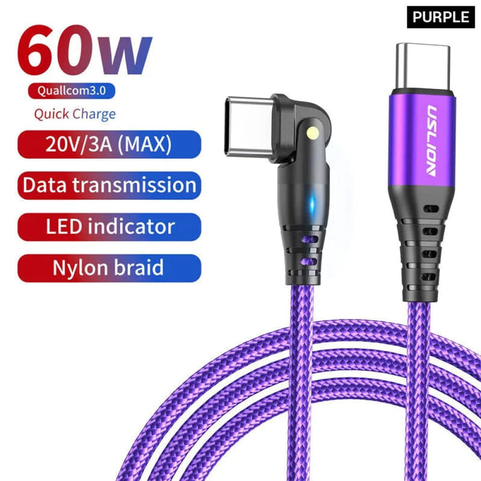 60w Usb c Fast Charge Cable for Xiaomi Samsung Macbook 180 Rotation