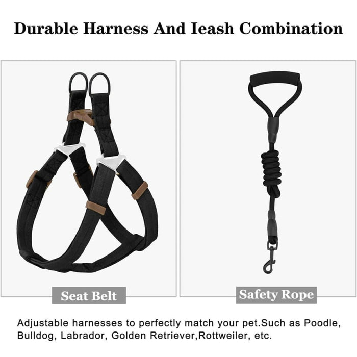 • Harness and Leash Set: Using the quick snap shoulder and belly straps, it only takes a few minutes to put the harness on your dog, and the front clip chest D-ring that secures the leash to the carrier allows you to have better control of your dog.