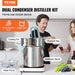 Alcohol Still 5 Gal / 19 L Stainless Steel Water Alcohol Distiller With Copper Coil For Fast Cooling Dual Condenser Distiller Kit With Secondary Distillation For Wine Whisky Brandy Silver