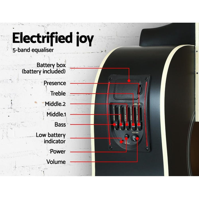 Alpha 41’ Inch Electric Acoustic Guitar Wooden Classical Full Size Eq Capo Black