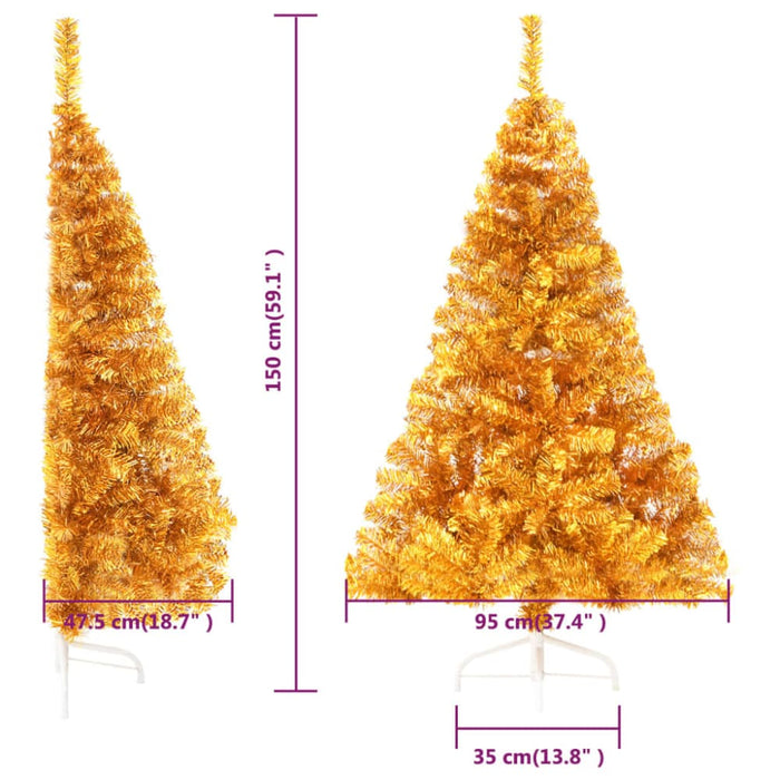 Artificial Half Christmas Tree with Stand Gold 150 Cm Pvc Taalko