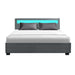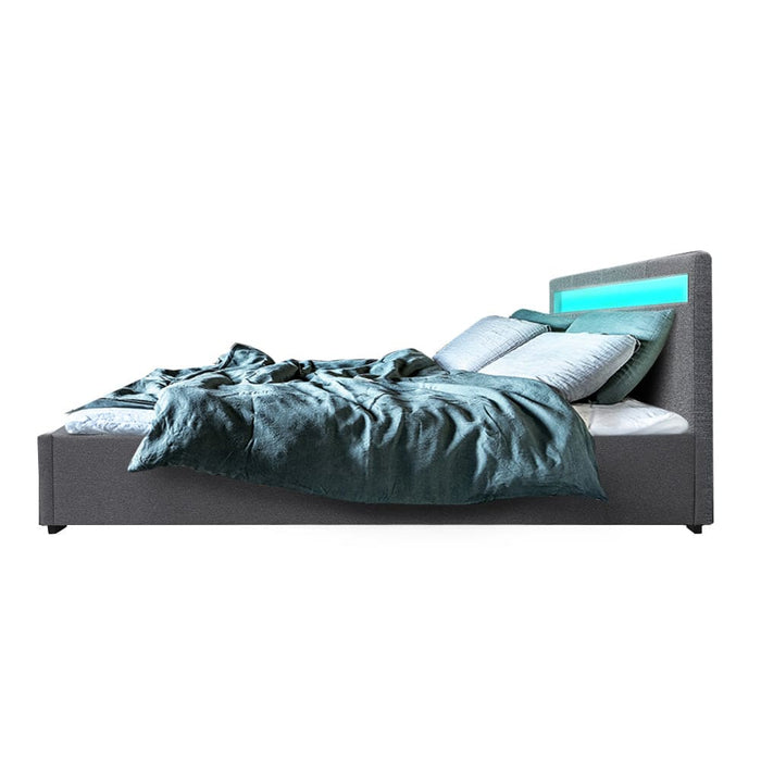 Artiss Cole Led Bed Frame Fabric Gas Lift Storage - Grey Queen