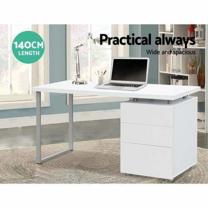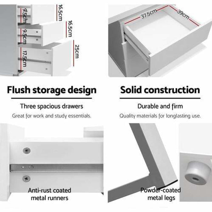 Artiss Metal Desk with 3 Drawers - White