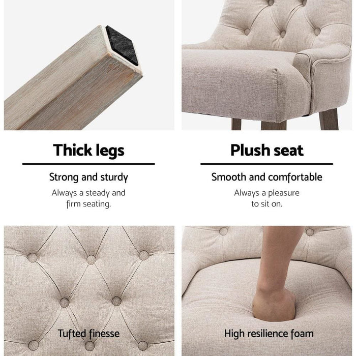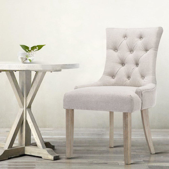Artiss Set of 2 Dining Chair Beige Cayes French Provincial Chairs Wooden Fabric