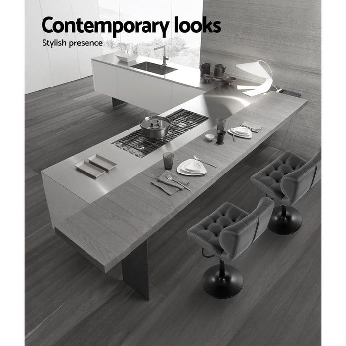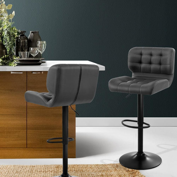 Artiss Set of 2 Kitchen Bar Stools Gas Lift Plush Pu Leather - Black and Grey