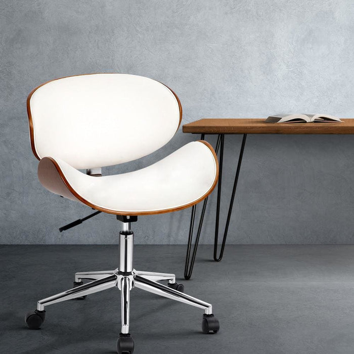 Artiss Wooden & Pu Leather Office Desk Chair - White
