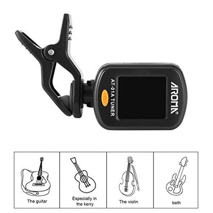 At-01a Foldable Clip-on Guitar Tuner Rotatable Universal Lcd Display