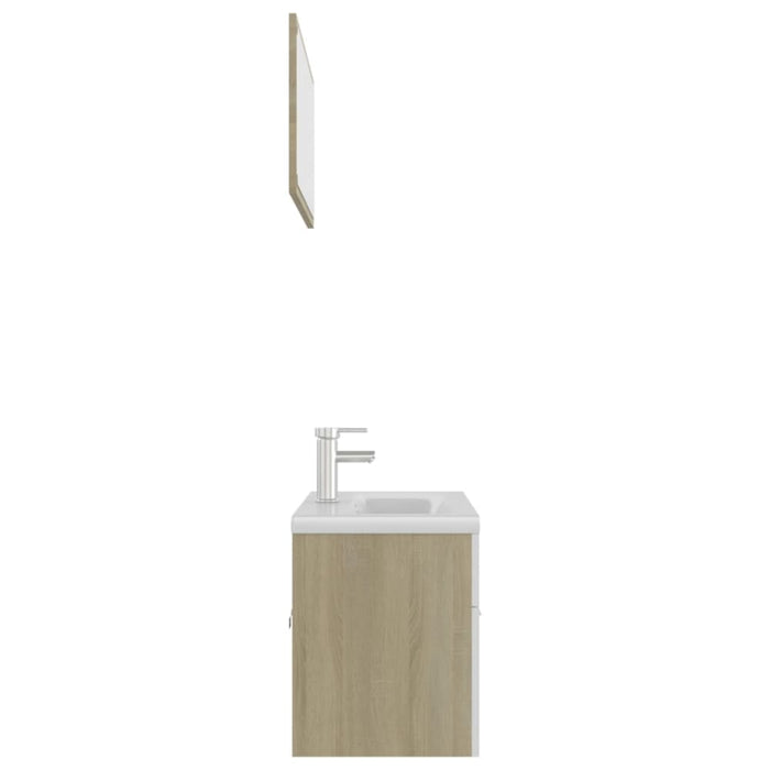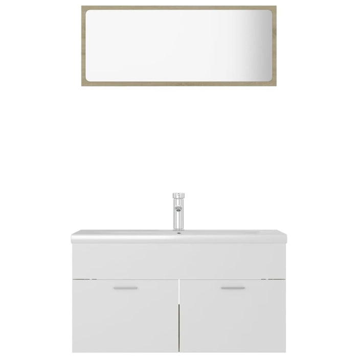 Bathroom Furniture Set White and Sonoma Oak Chipboard Tbibnnn