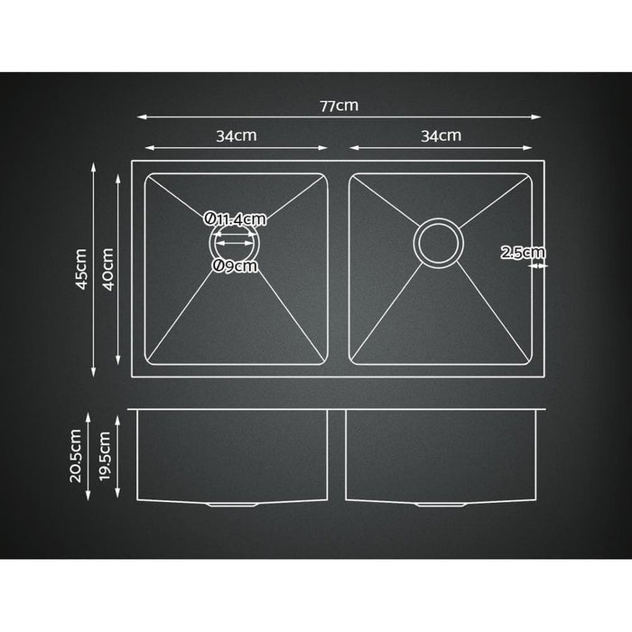Cefito 77cm x 45cm Stainless Steel Kitchen Sink Under Top Flush Mount Silver