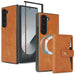 For Samsung Galaxy Z Fold7 5G Magnetic Button Card Bag Magsafe Ring Leather Phone Case