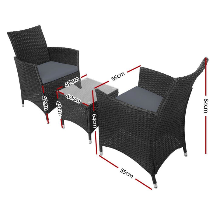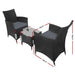 Gardeon 3 Piece Wicker Outdoor Furniture Set - Black