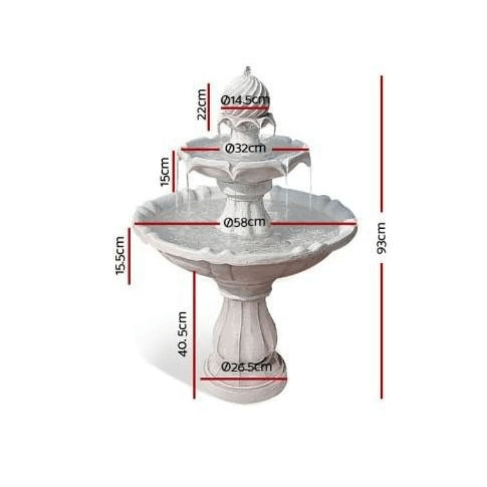 Gardeon 3 Tier Solar Powered Water Fountain - Ivory