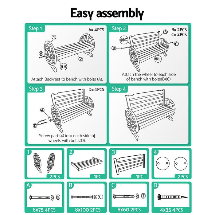 Gardeon Garden Bench Wooden Wagon Chair 3 Seat Outdoor Furniture Backyard Lounge _ Special