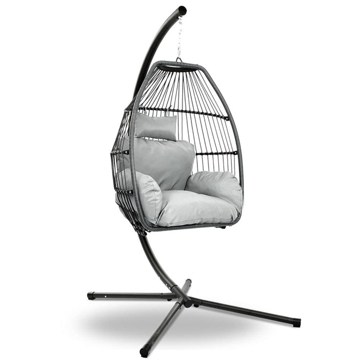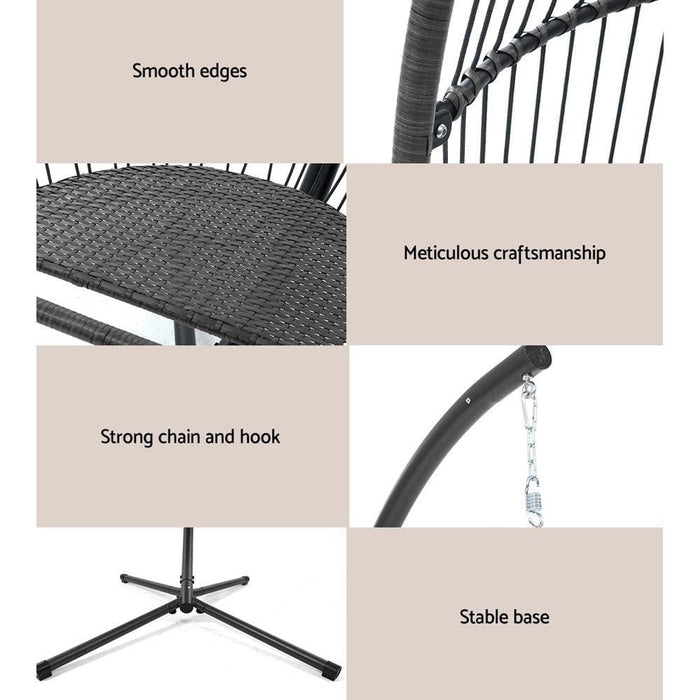 Gardeon Outdoor Furniture Egg Hammock Hanging Swing Chair Stand Pod Wicker Grey