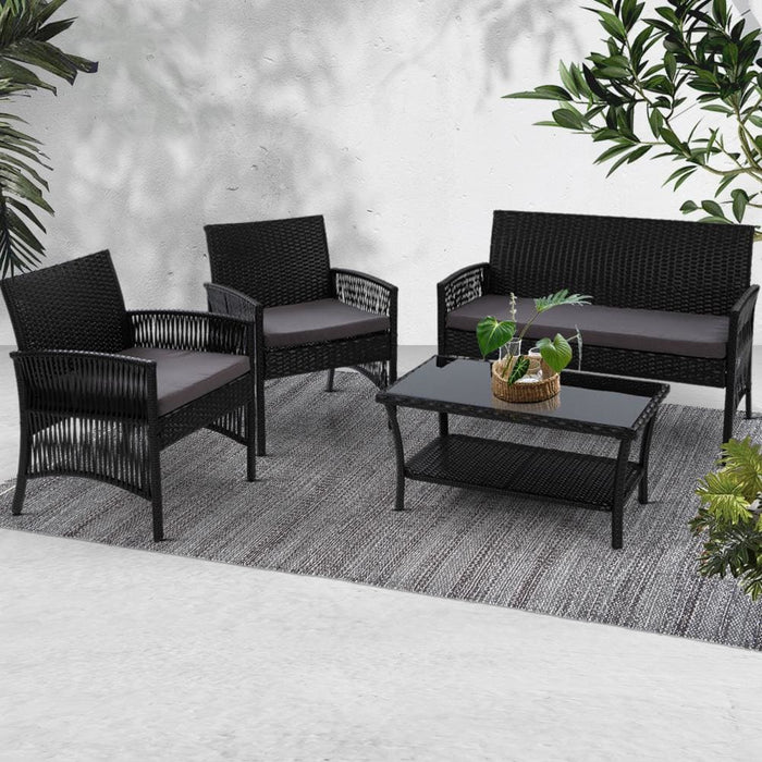 Gardeon Outdoor Furniture Set Wicker Cushion 4pc Black