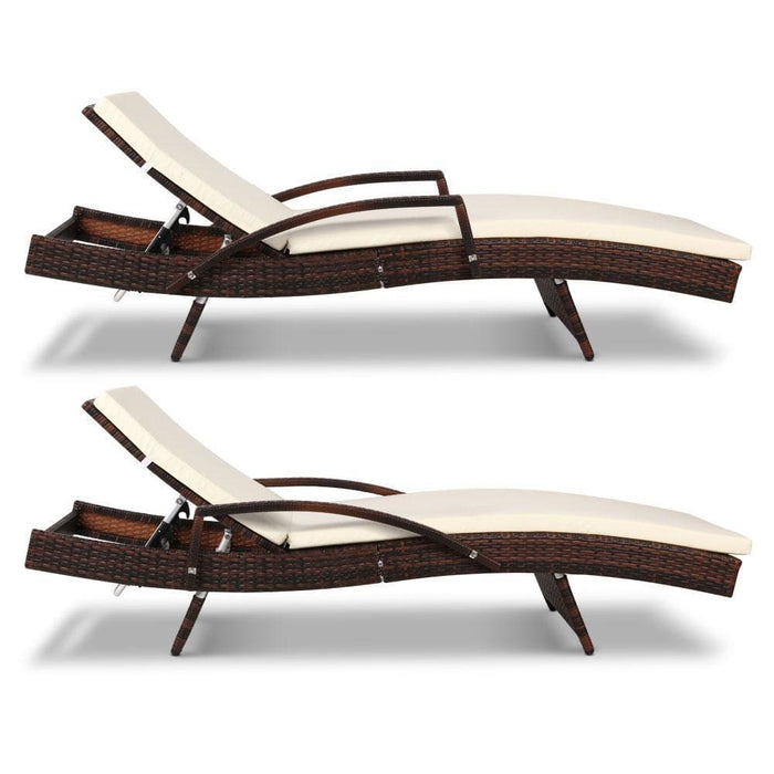 Gardeon Set of 2 Sun Lounge Outdoor Furniture Day Bed Rattan Wicker Lounger