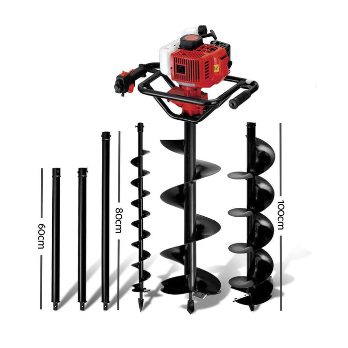 Giantz 92cc Petrol Post Hole Digger Drill Borer Fence Extension Auger Bits