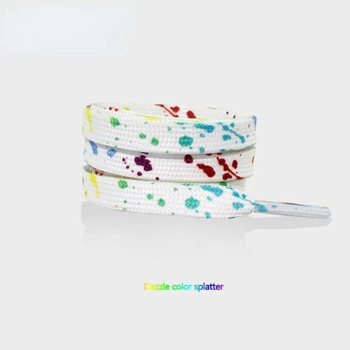 Ink Splatter Sneakers Quality Fabric 0.8cm Flats Rainbow Shoe Laces 100/120/140/160cm Length