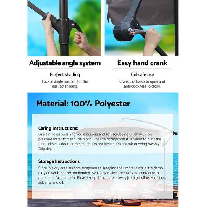 Instahut 3m Outdoor Furniture Garden Umbrella Charcoal