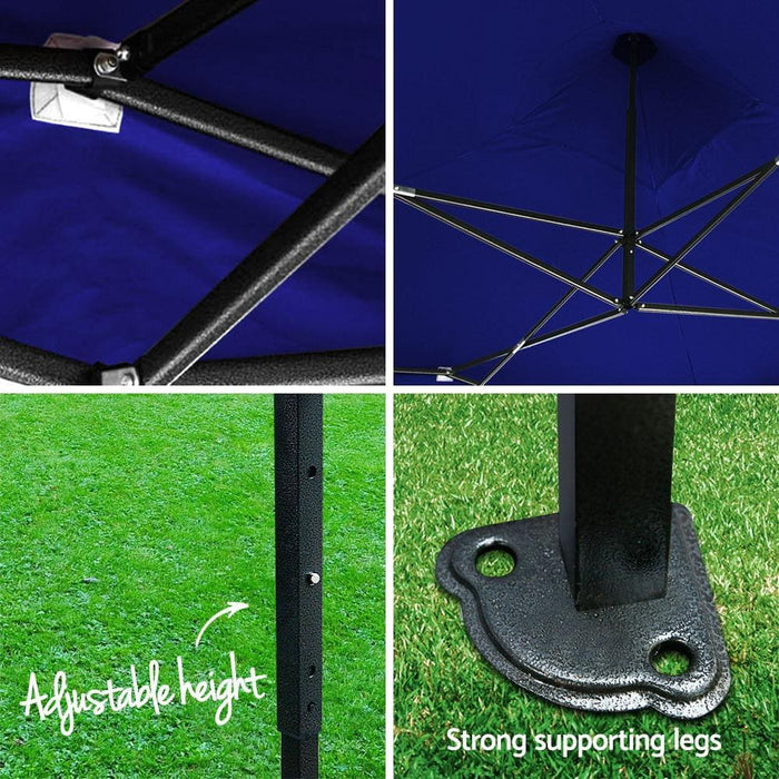 Instahut Gazebo Pop Up Marquee 3x3m Outdoor Tent Folding Wedding Gazebos Blue