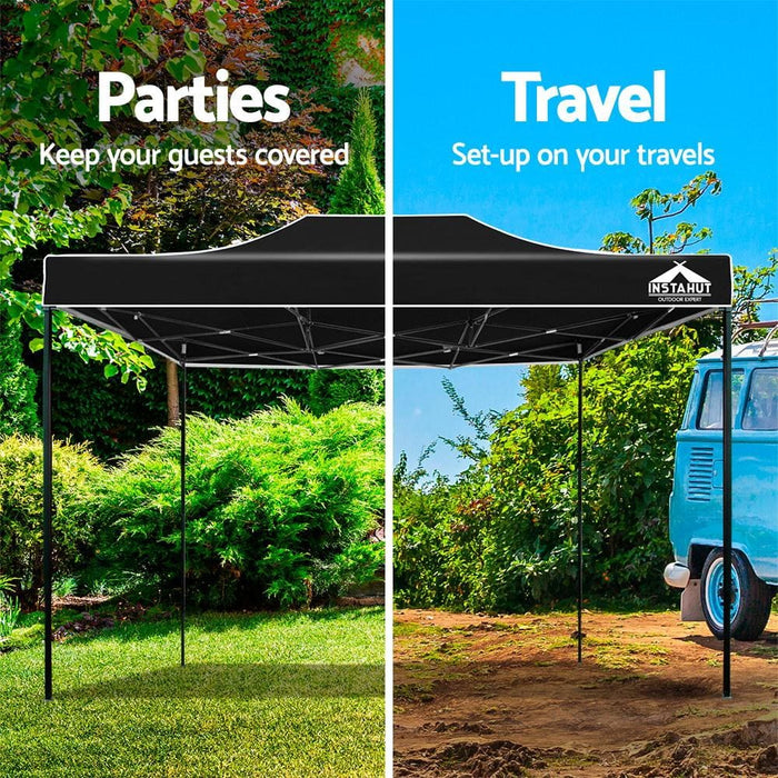 Instahut Gazebo Pop Up Marquee 3x4.5m Outdoor Tent Folding Wedding Gazebos Black