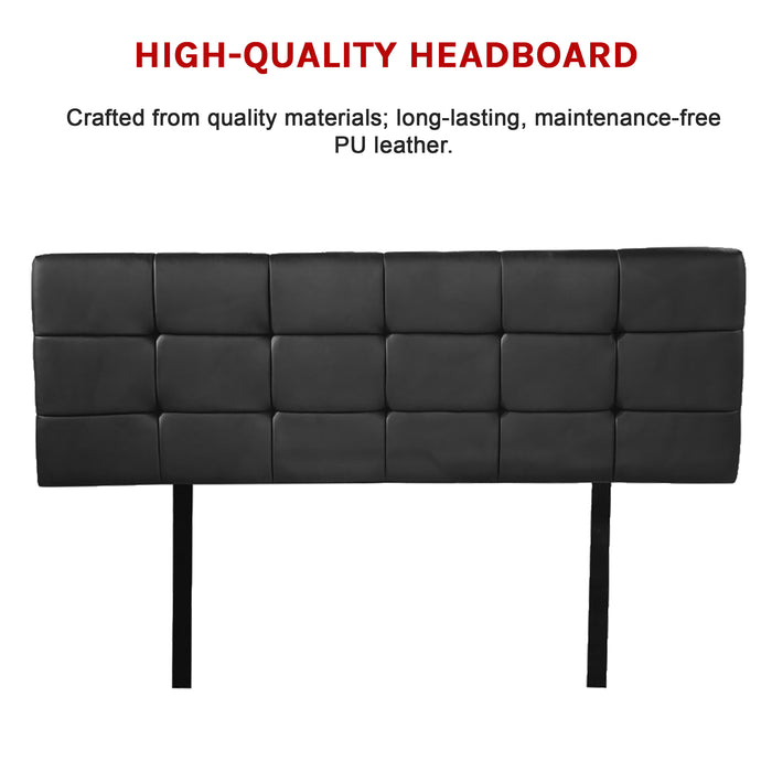 PU Leather Double Bed Deluxe Headboard Bedhead - Black