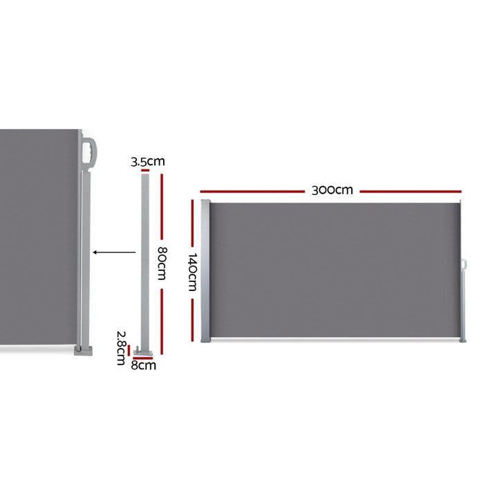 Side Awning Sun Shade Outdoor Blinds Retractable Screen 1.4x3m Gr