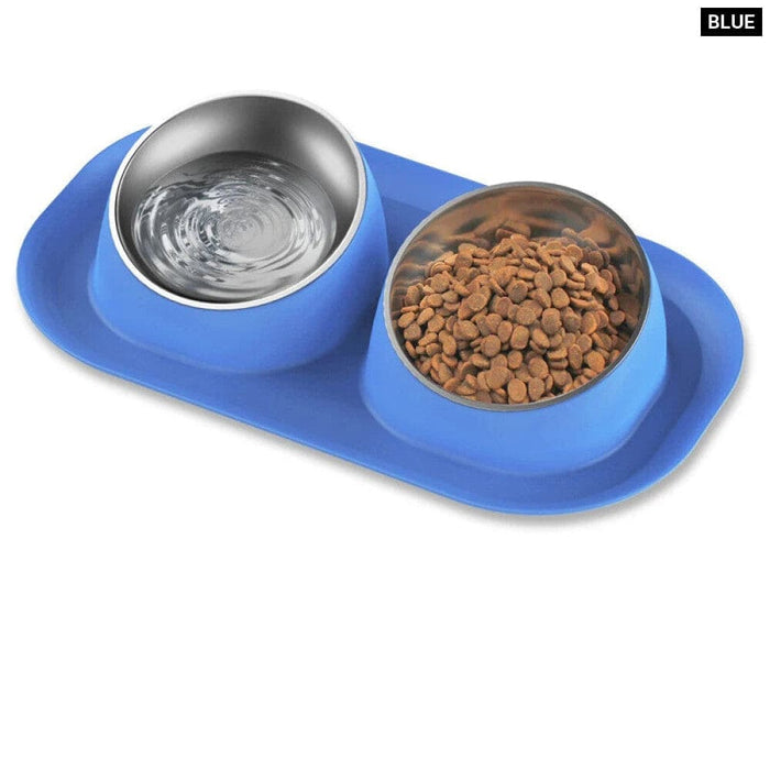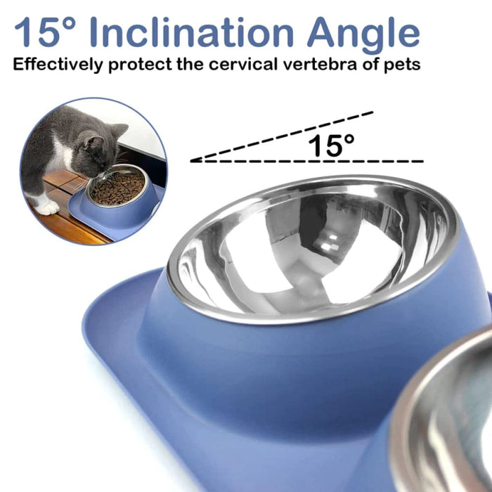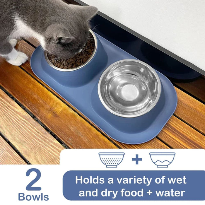 Stainless Steel Double Dog Bowl Anti Skid no Spill Removable Small Medium Pet Feeder