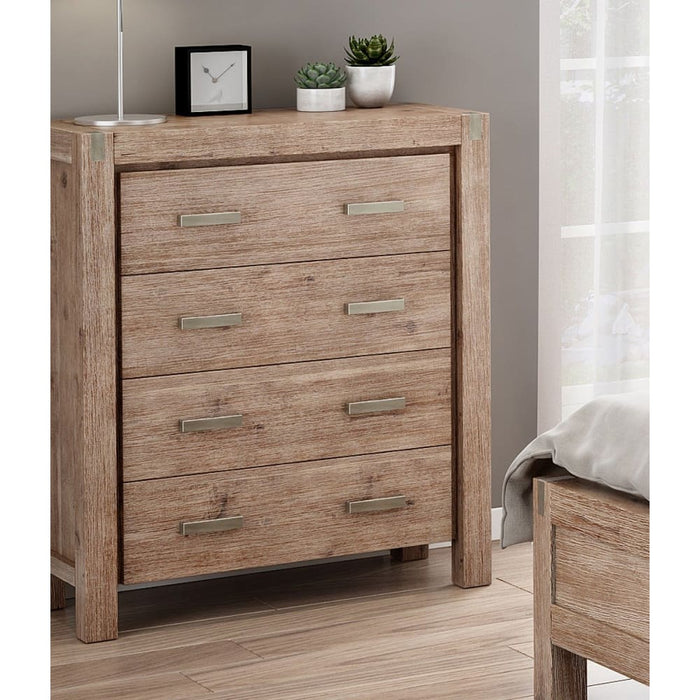Tallboy with 4 Storage Drawers Solid Wooden Assembled in Oak Colour