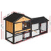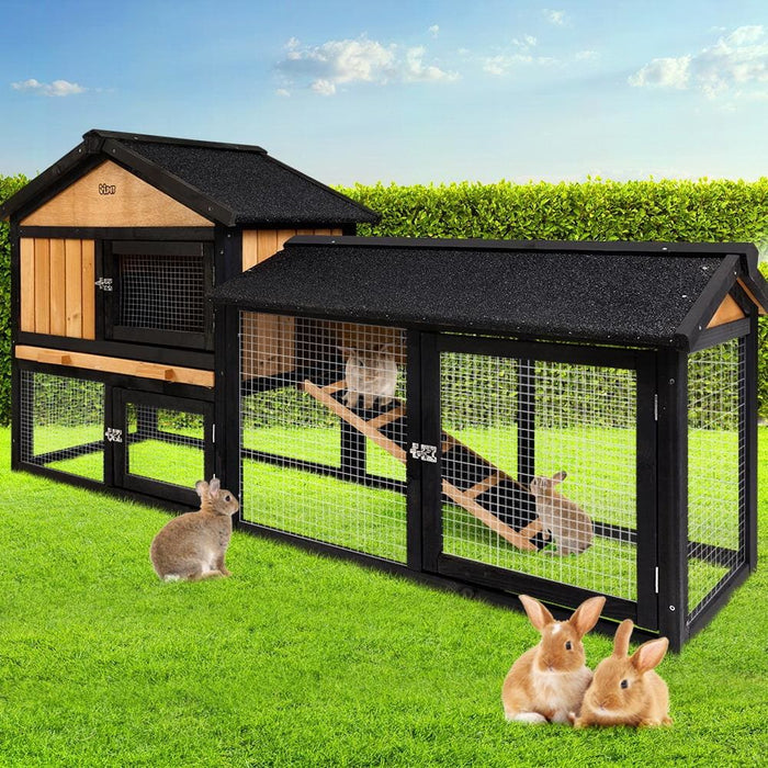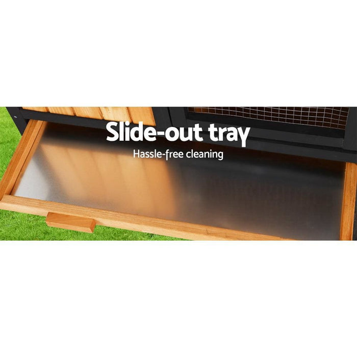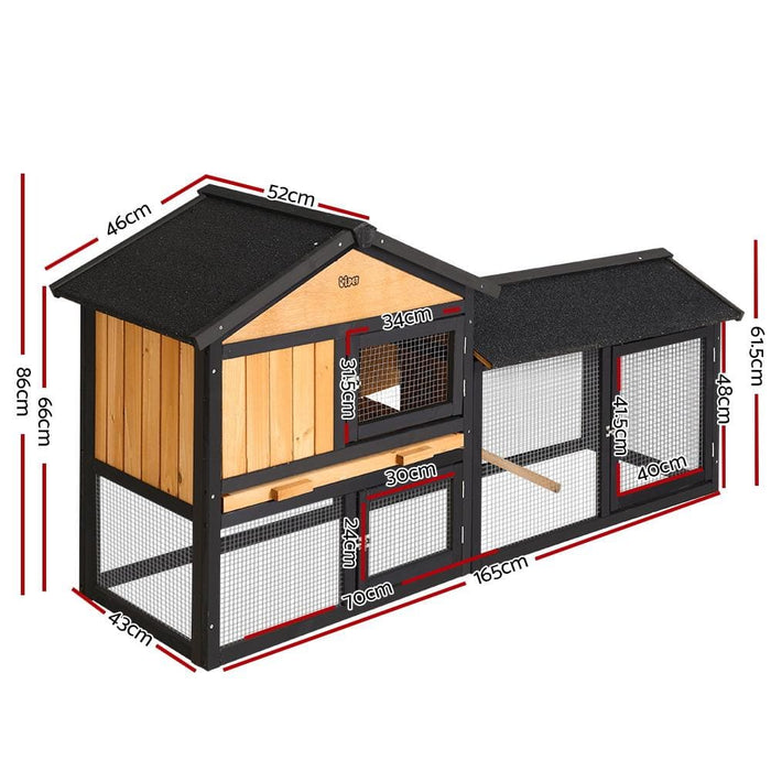 Three Doors Pet Rabbit Wooden Cage with Built-in Foldable Ramp