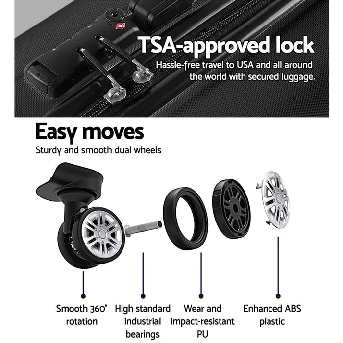 Wanderlite 28’ Luggage Trolley Travel Suitcase Set Tsa Lock Hard Case Black