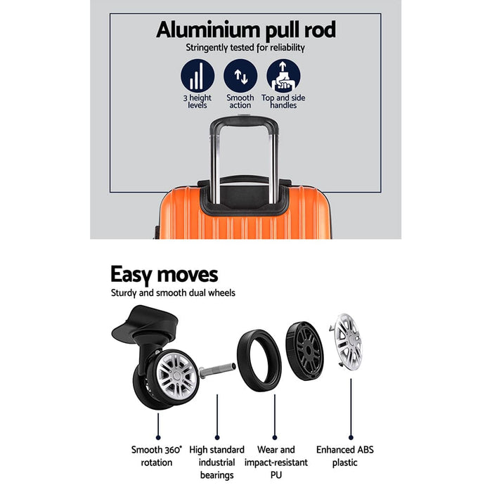 Wanderlite 3pc Luggage Sets Trolley Travel Suitcases Tsa Hard Case Orange